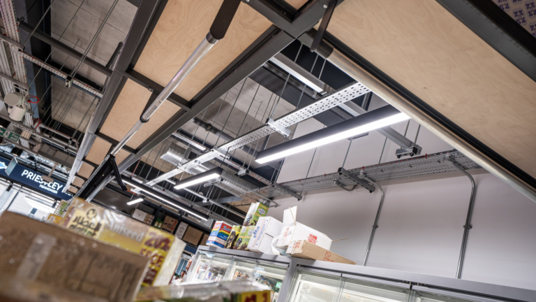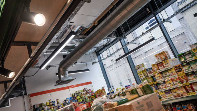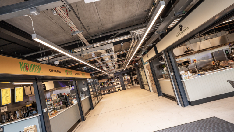 For food prep areas, such as butchers shops and the Food Savers Cookery school, which is housed within the market, the popular Tornado Evo industrial batten was utilised.