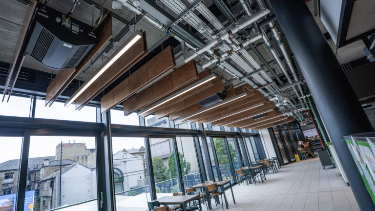 The hugely versatile Vasco Evo bi-directional suspended linear pendant was used over seating areas and walkways on both floors to provide uniform lighting. Vasco is produced in both 1200mm and 1500mm lengths, but can be adapted using innovative continuous linking or corner connectors to create continuous strips of lighting in large spaces.