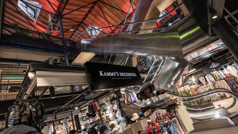 On the middle floor of the state-of-the-art building three-circuit Primo Track was used inside the fresh food stalls, including butchers and fruit and veg displays, delicatessens and pop-up booths, as well as clothing and jewellery retailers on the lifestyle floor – to allow traders to highlight products and focus their lighting.