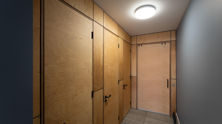 Para la iluminación de emergencia y la señalización de salida, el aplique GUARDIAN y el downlight empotrado FALCON PRO en negro, garantizaron que las zonas críticas siguieran estando bien iluminadas en caso de fallo de la red eléctrica y, junto con el plafón SLEEK, proporcionaron la seguridad esencial sin comprometer la estética del espacio.