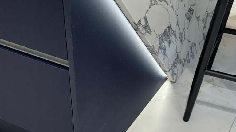 El objetivo era introducir elementos de iluminación arquitectónica que realzaran tanto la estética como la funcionalidad de la cocina, con un acabado limpio y minimalista. Para ello, se diseñó un esquema de iluminación utilizando la tira LED E-Cell IP20 de Ansell con perfil empotrable, combinada con downlights Prism Pro, para crear un techo ambiental y proporcionar una iluminación funcional.